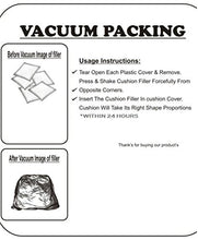 • Packing Instructions: VACUUM PACKED | Tear open the transparent poly cover and remove it. - Press,Shake and Beat cushion with both hands from opposite corners. - Insert the cushion into cushion cover. Right proportions will reach within few hours